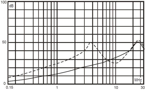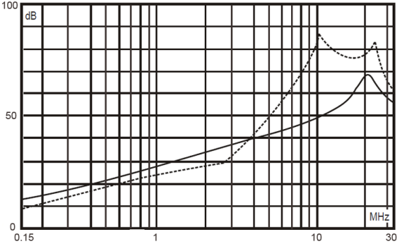 ——————    共模(common mode)             — — — — —   差模(differential mode)