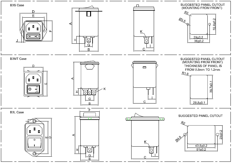 B3L 58 28.5 42.8 60 51 30.5 12.8 11.1 12 6.3*0.8