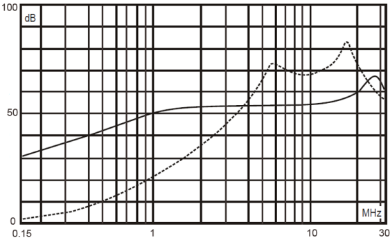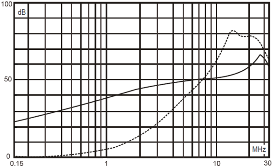 ——————    共模(common mode)             — — — — —   差模(differential mode)